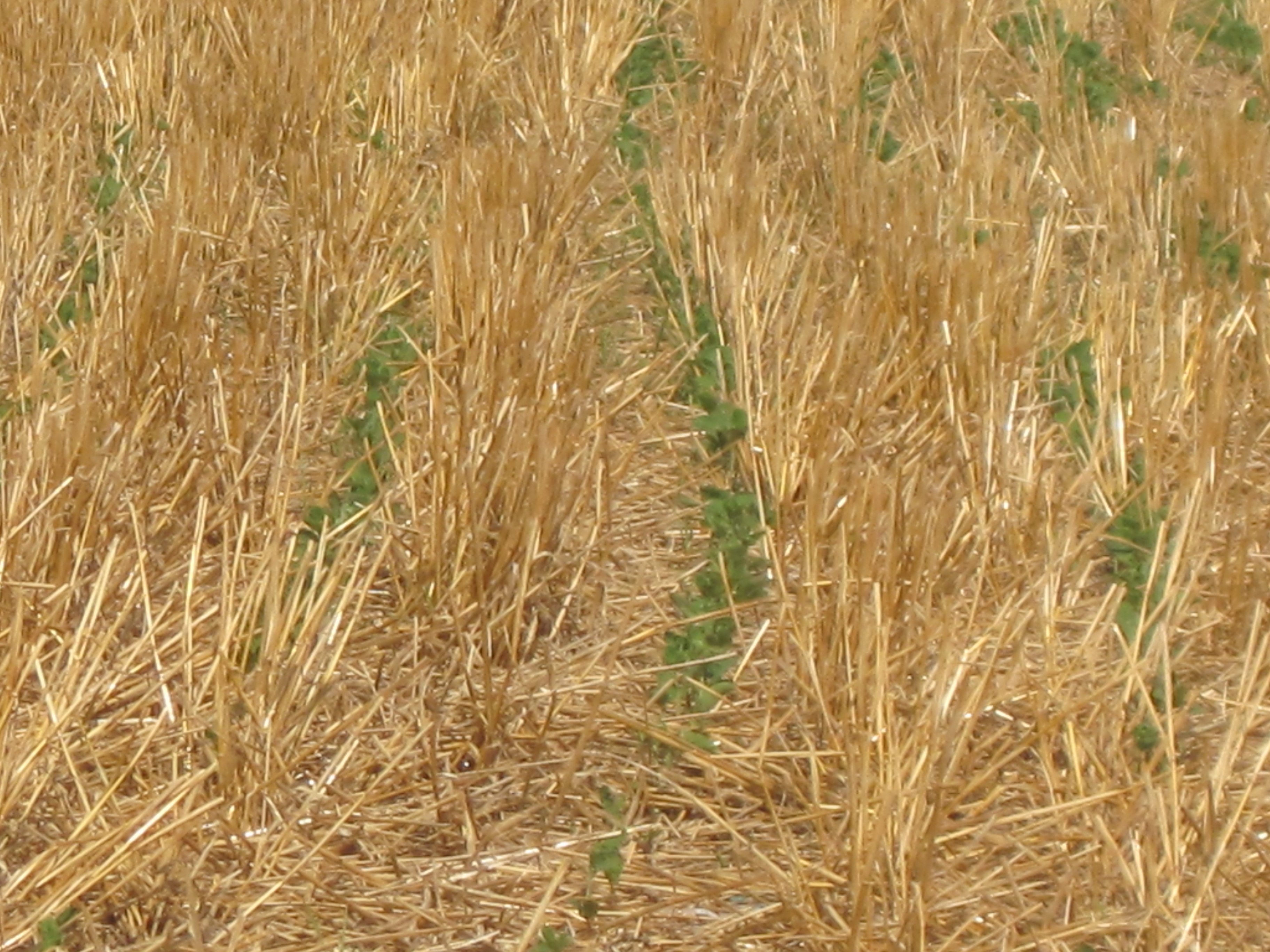- soybeans coming up through wheat straw