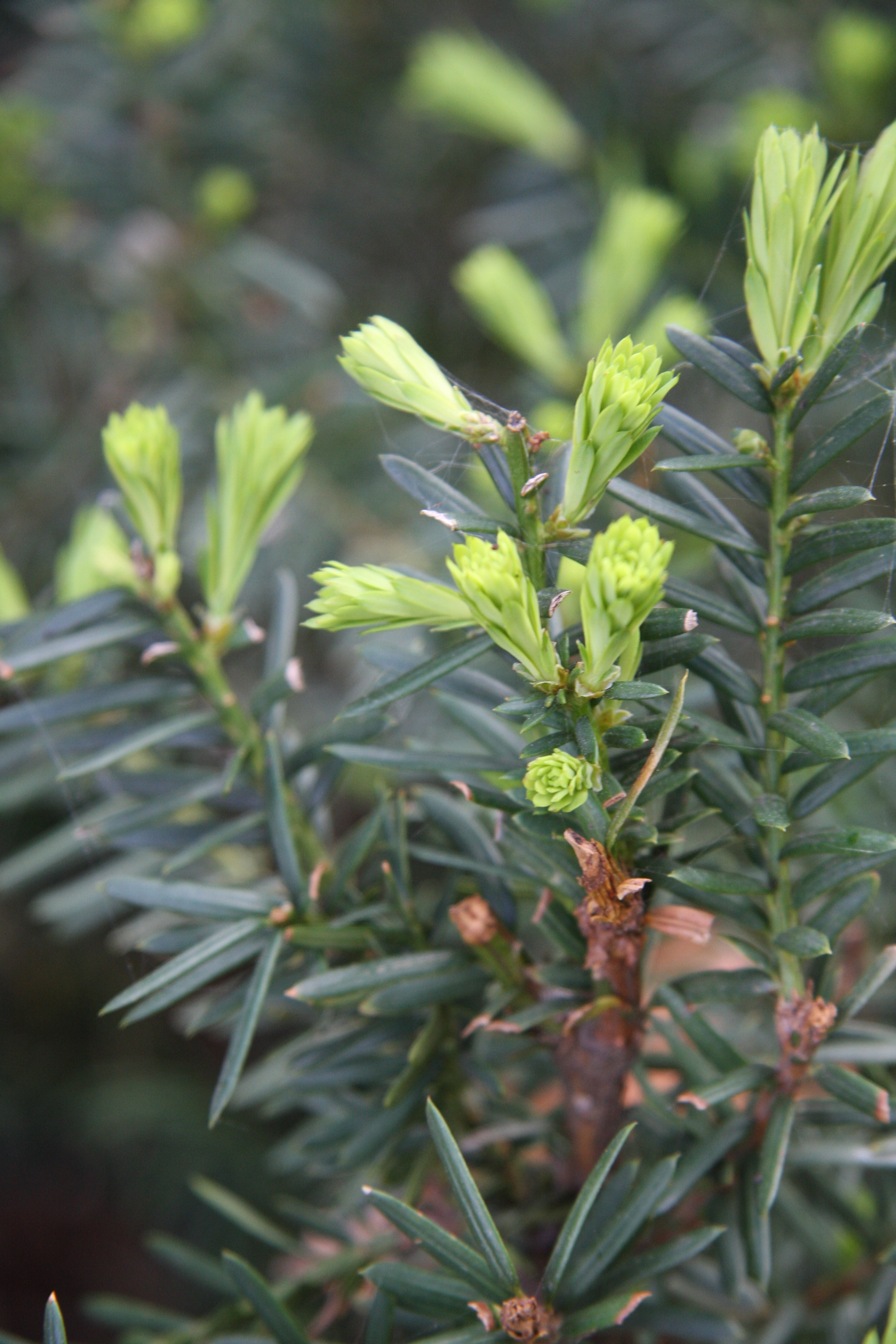 - evergreen bushes growing points