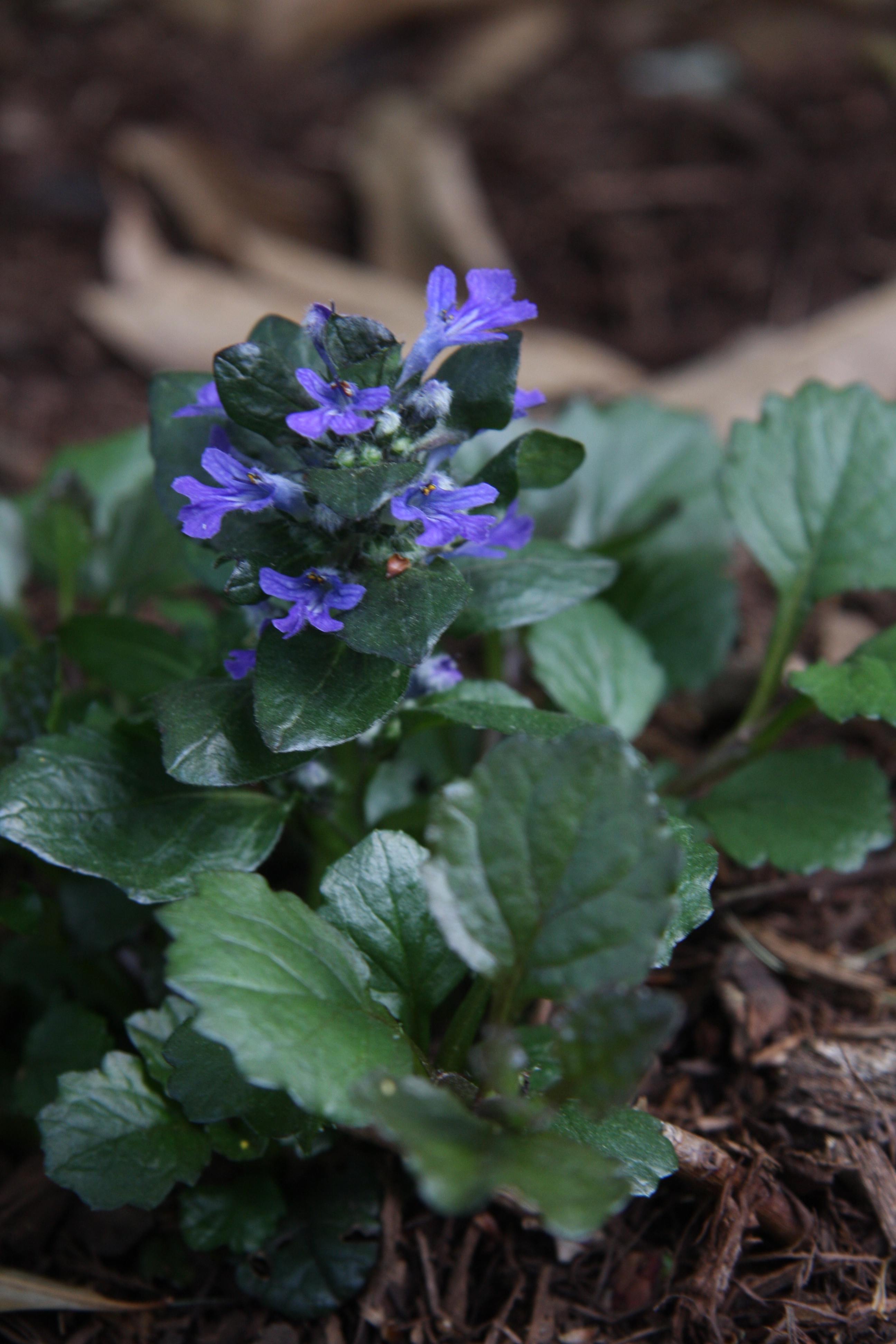 Plant 1 is a groundcover called ajuga (or bugleweed).