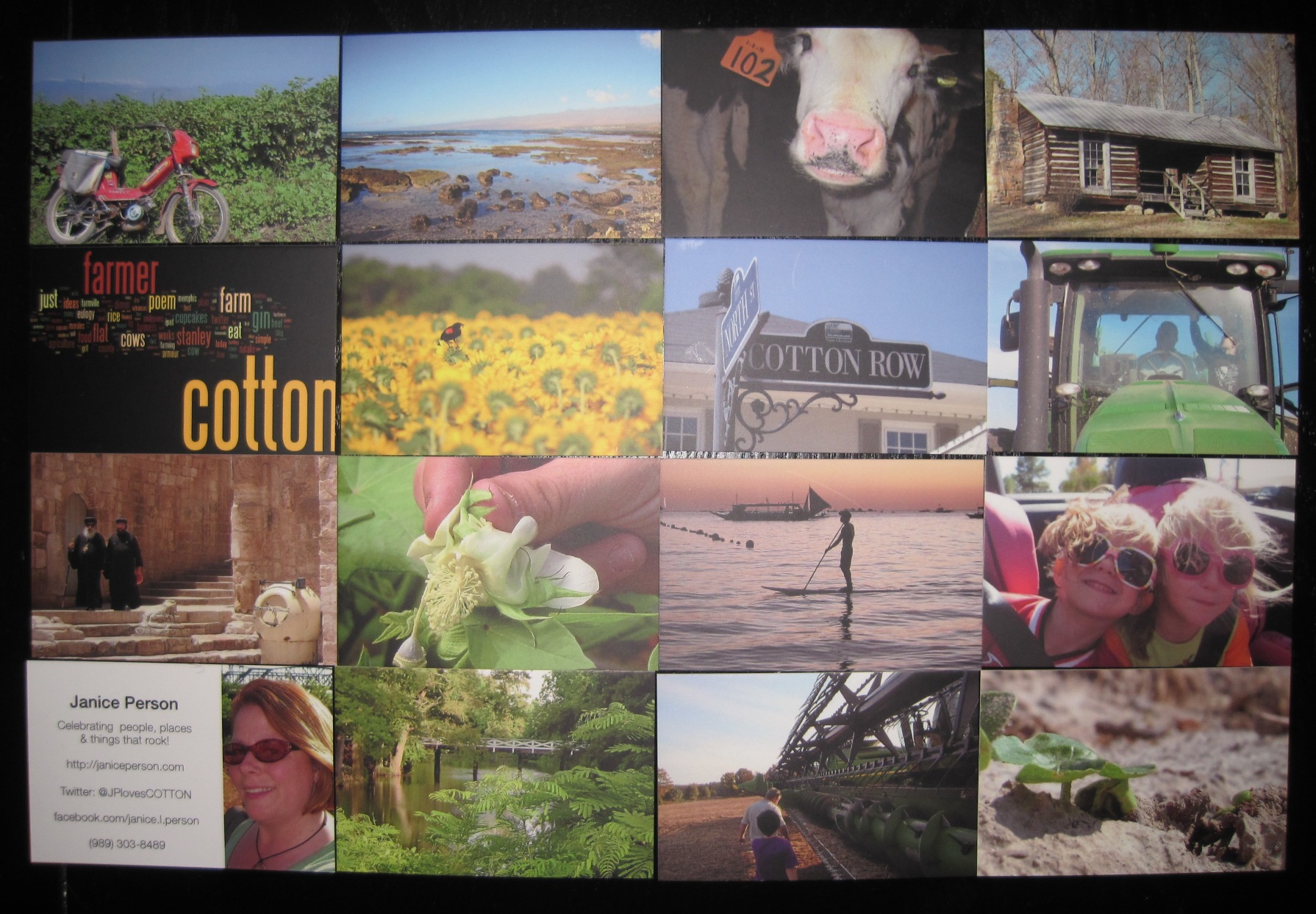 Moo is one of many services that lets you design cards online. I decided to put my contact info and a photo of me (I’m such a visual learner that having a photo of people on cards is totally better than trying to write notes to remind me who they are, what we discussed, etc.) and on the flipside of that I wanted to showcase photos. And moo lets you pick up to 50 designs, so of course that’s how many I got! Here’s a photo that shows several of the photos I selected: