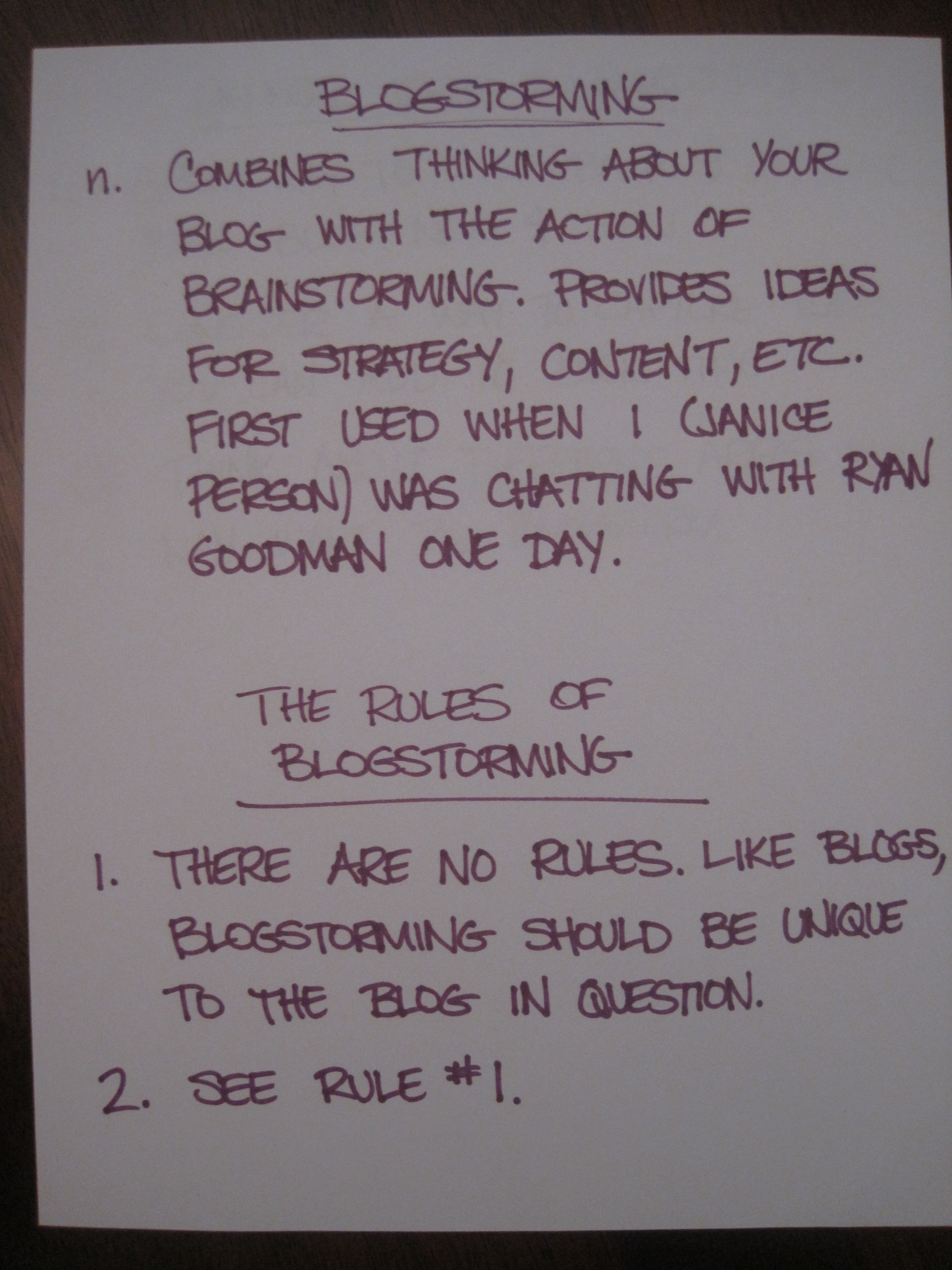 General Ideas on Blogstorming