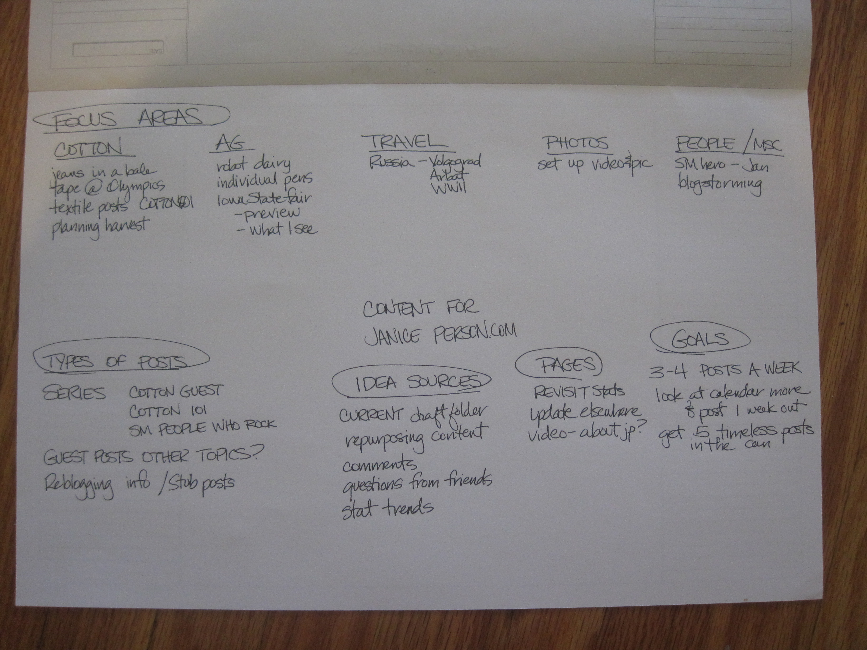Examples from a Blogstorming Session for janiceperson.com