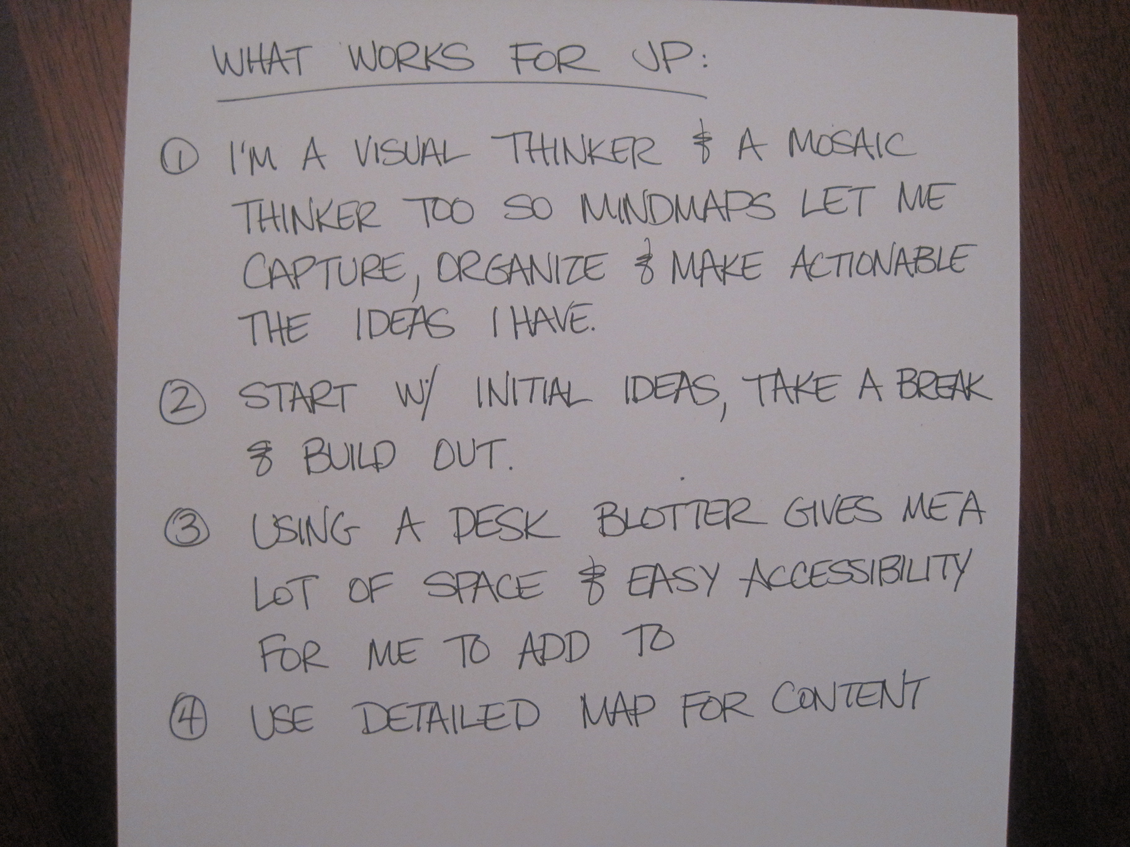 • I’m a visual thinker and a mosaic thinker too so mindmaps let me capture, organize and make actionable the ideas I have.