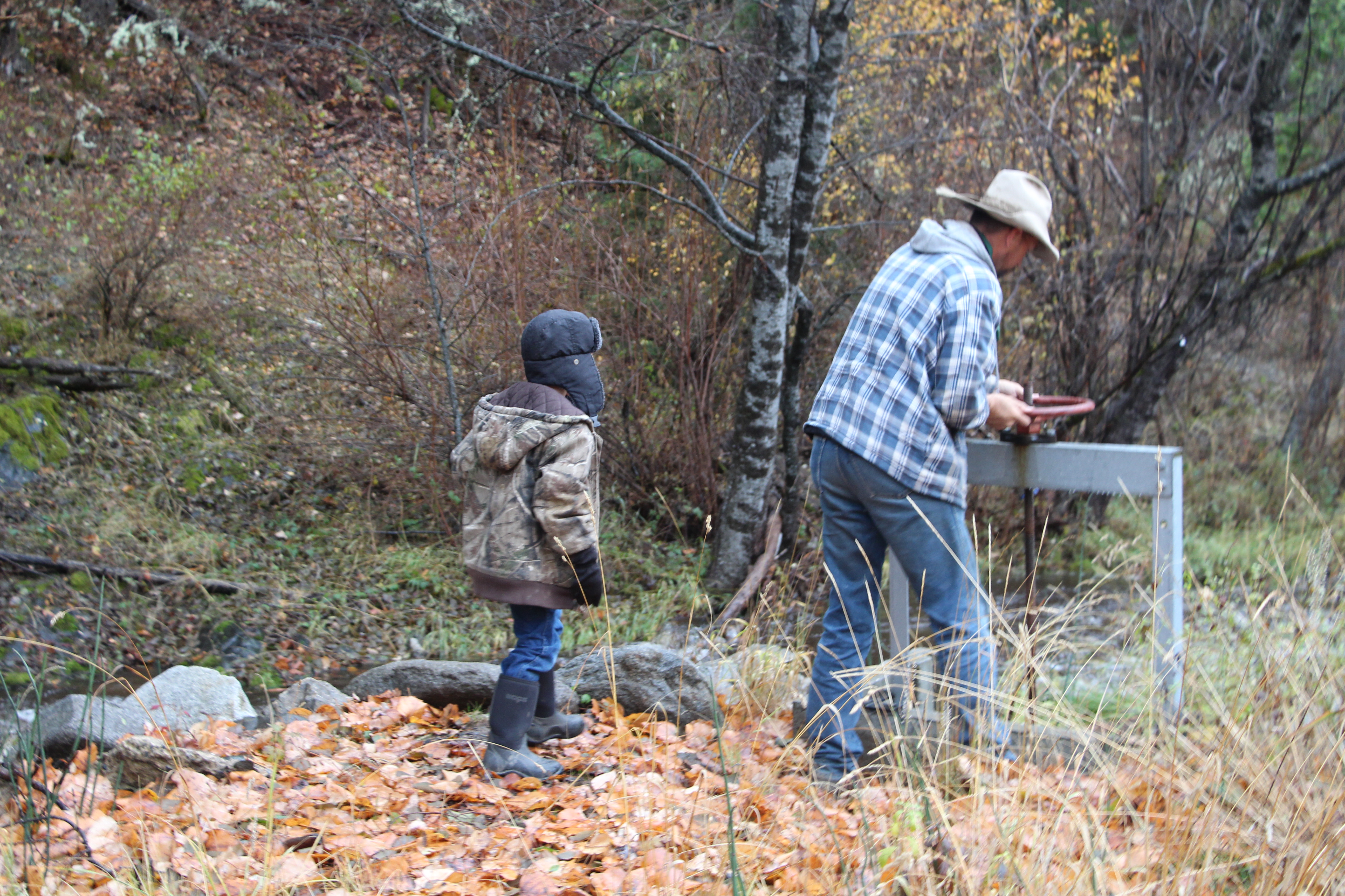 We worked our way up the mountains nearby and checked for blockage on dams and flushed gates where needed, etc. Mainly I took photos and chatted with Kyle who was running off some of the energy he had pent up while he was in school.